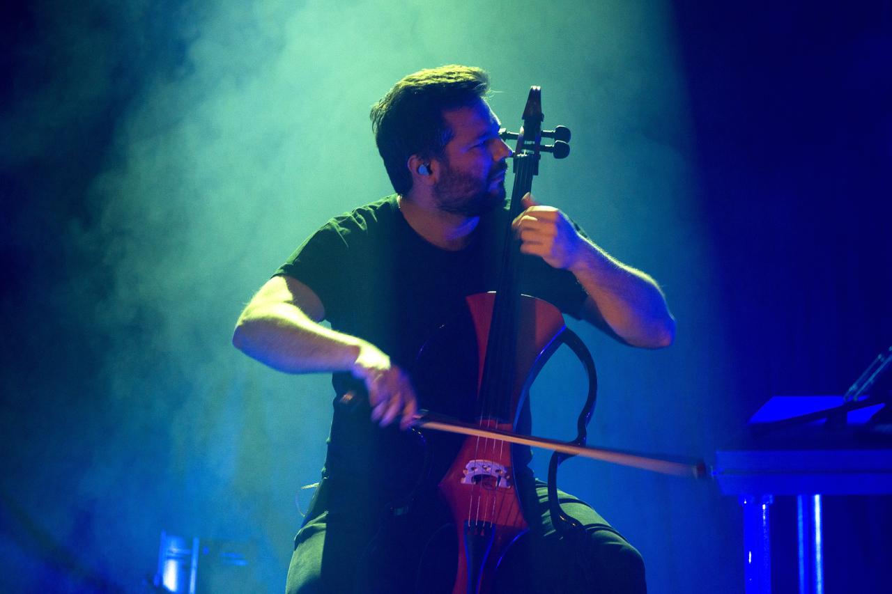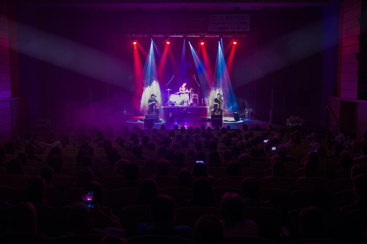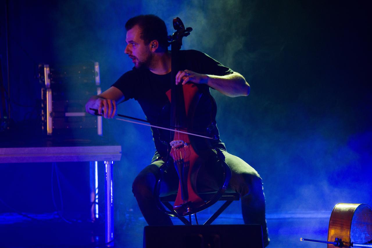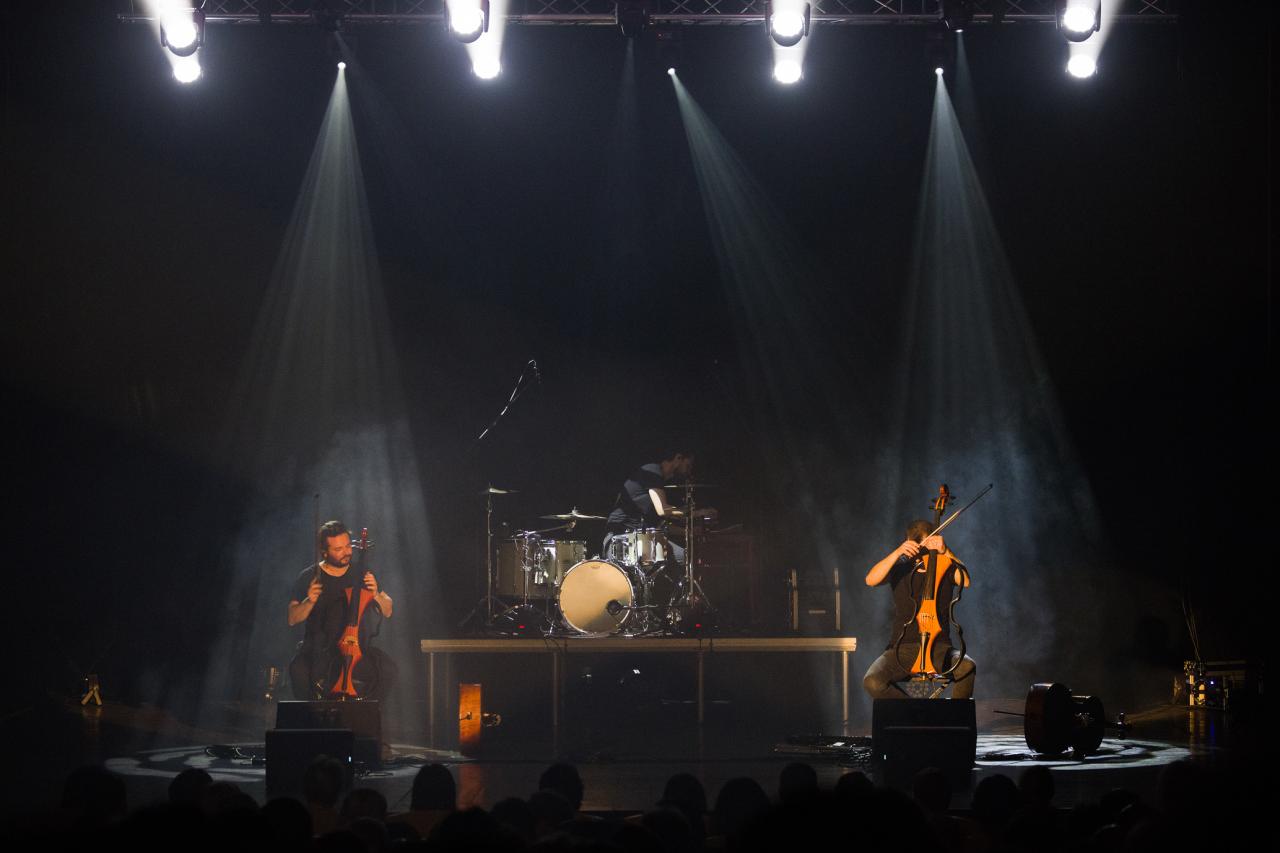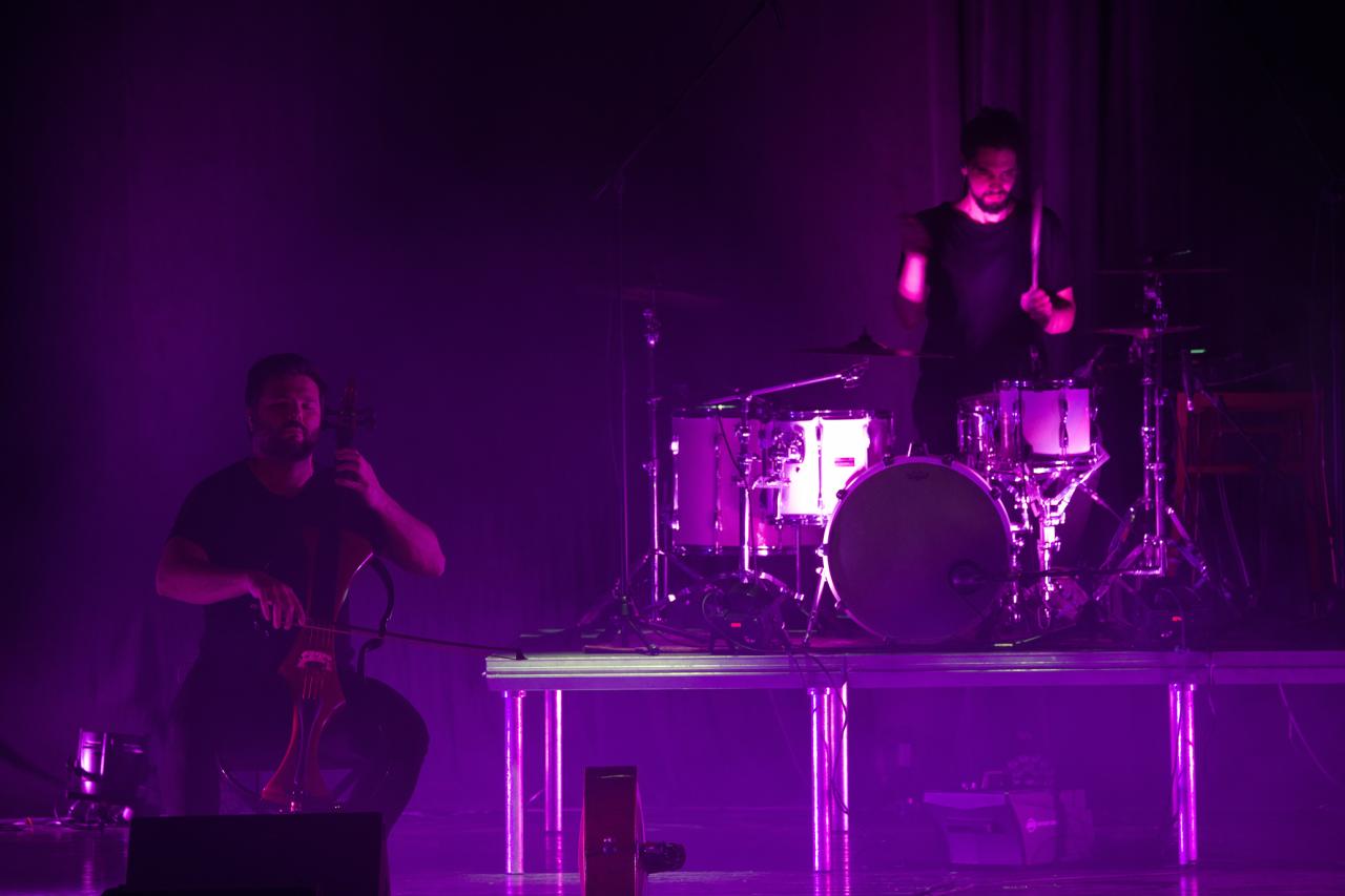 Hudební show dvou elektronických violoncell a bicích