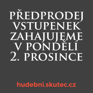 V pondělí 2. prosince 2019 bude zahájen předprodej vstupenek na XVII. ročník festivalu Tomáškova a Novákova hudební Skuteč. Ten proběhne v termínu od 22. března do 17. května 2020.